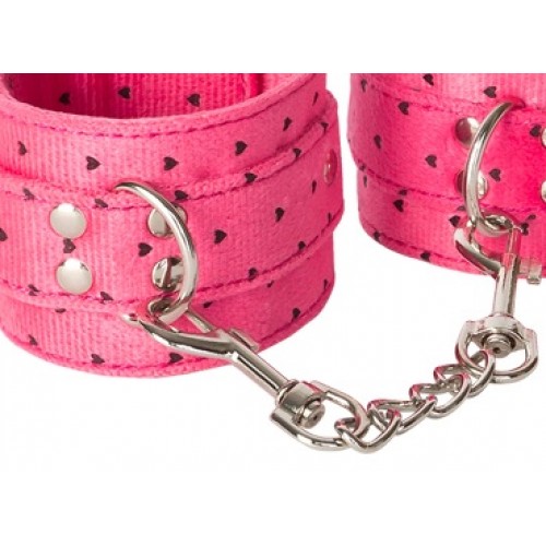 Благодаря приятной отделке из плюша наручники нежно и ласково обхватят хрупкие запястья и не будут натирать кожу. Замшевые манжеты соединены между собой металлической цепочкой с карабинами.