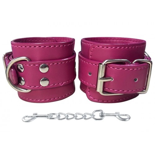 Металлическая фурнитура обеспечивает качественную фиксацию. Наручники соединяются между собой цепью с карабинами, благодаря чему обеспечивается достаточно жесткая сцепка.