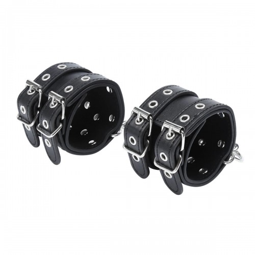 Металлическая фурнитура обеспечивает качественную фиксацию. Наручники соединяются между собой цепью с карабинами, благодаря чему обеспечивается достаточно жесткая сцепка.