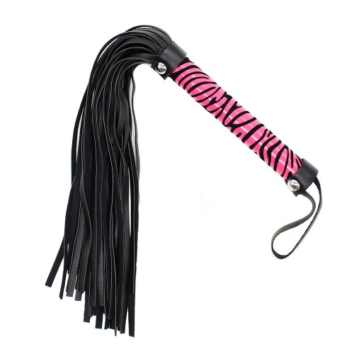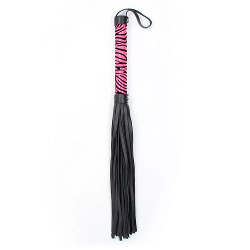 Компактная черно-розовая плеть с тигровым принтом на рукояти 40 см