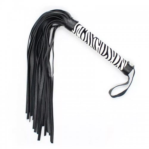Компактная черно-белая плеть с тигровым принтом на рукояти 39 см
