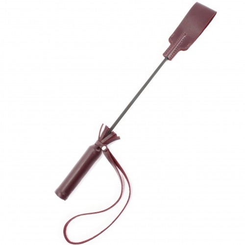 Рукоятка стека из натуральной кожи бордового цвета, на конце девайса расположен кожаный шлепок.