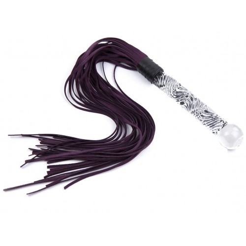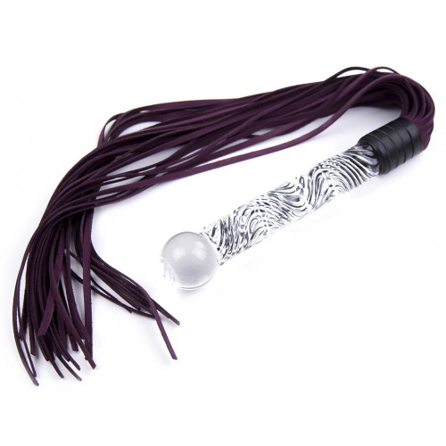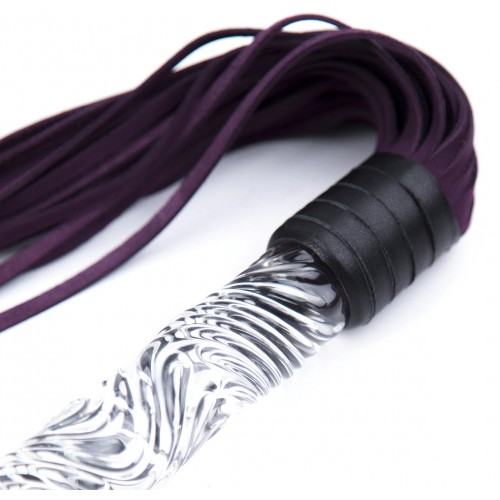 Замшевая плеть фиолетового цвета с прозрачной рукоятью 68 см