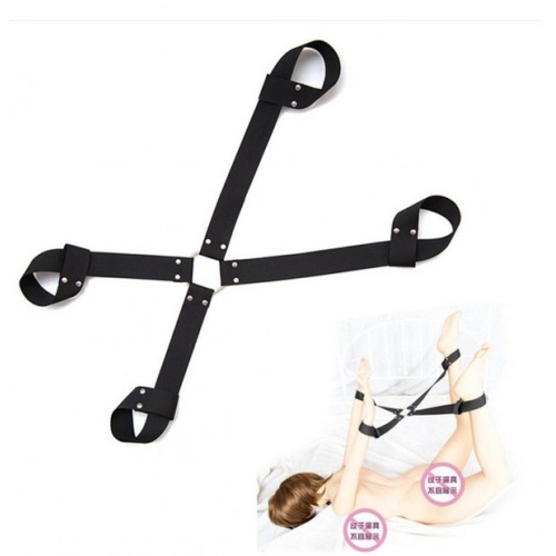 Универсальный фиксатор, состоящий из поножей и наручников, соединенных между собой крестообразной фиксацией, позволят обездвижить Вашего партнера в любой позе.