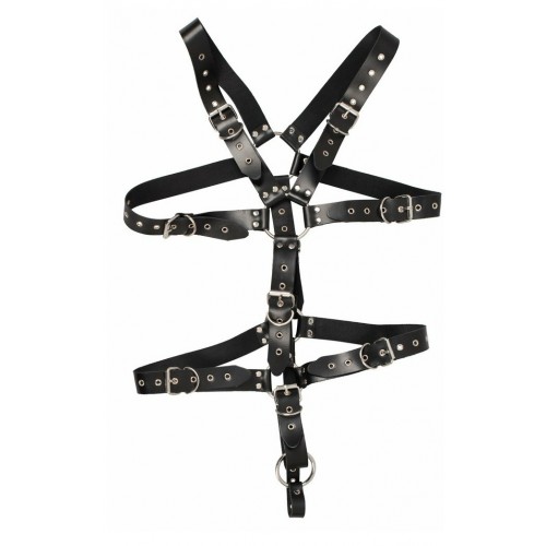 Кожаная мужская сбруя с эрекционным кольцом Zado Fetish
