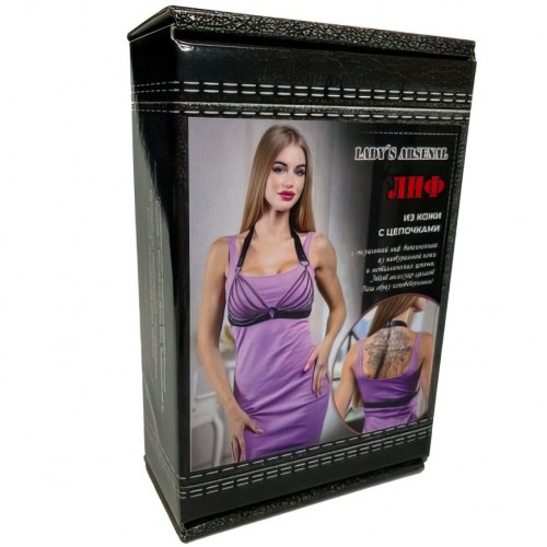 Утончённая портупея в виде лифа, декорированного металлическими цепочками, выполнена из натуральной кожи высокого качества и металлической фурнитуры.