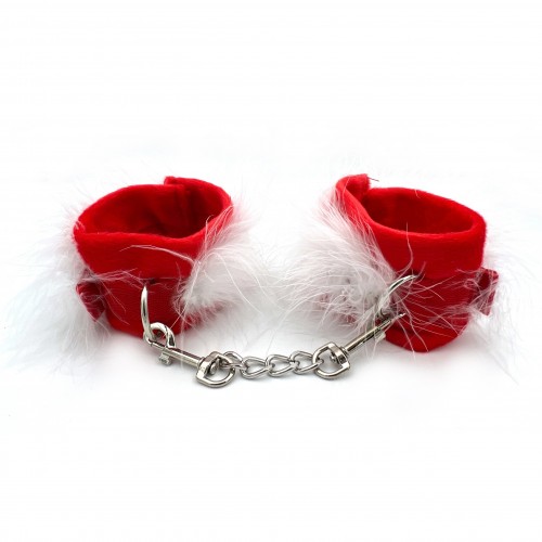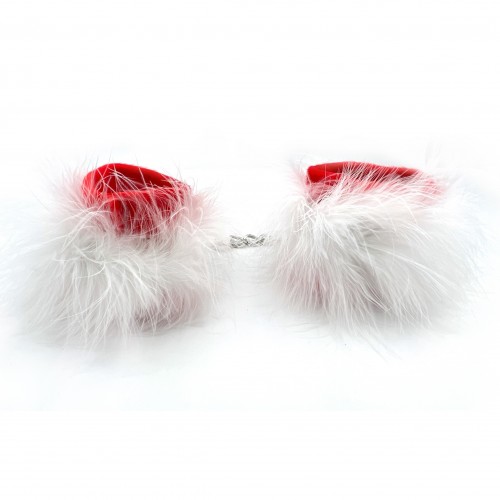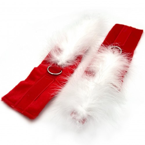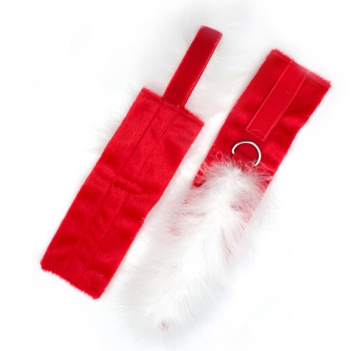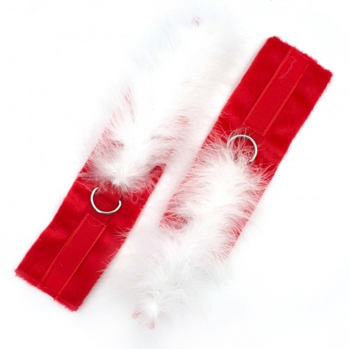 Красные плюшевые оковы для фиксации, с белым мехом красиво разнообразят вашу сексуальную жизнь.
