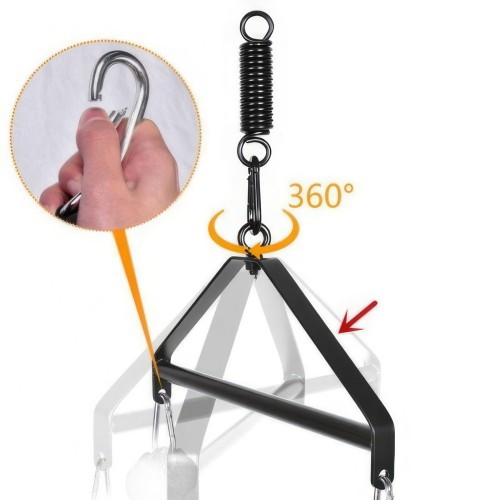 Распределение нагрузки в качелях продумано до мелочей, широкий купол металлического крепления поможет правильно распределить вес, а пружина способствует повороту качелей в любом направлении.