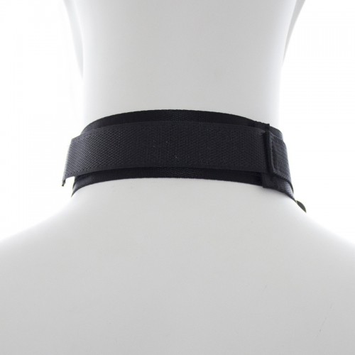 Выполненный из черного нейлона аксессуар надежно фиксируется на шее и запястьях с помощью липучки.