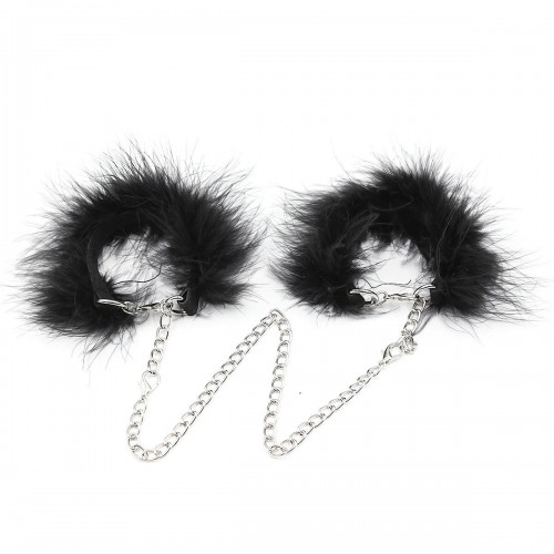 Наручники крепятся между собой с помощью серебряной цепочки на карабинах.
