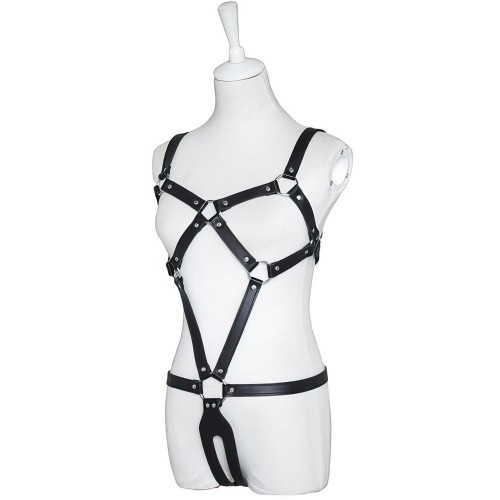 Кожаная сбруя по форме напоминает удобное сексуальное боди. Стильные ремешки красиво оплетают обнаженное тело, придавая ему еще большую сексуальность и возбуждая особенную страсть.