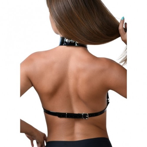 Ошейник с мягким подкладом позволяем чувствовать себя максимально комфортно. Лиф из кожаных ремешков приподнимает грудь, придавая женским формам еще большую привлекательность.