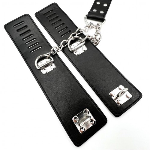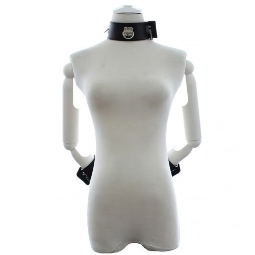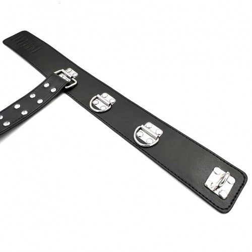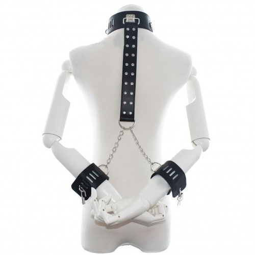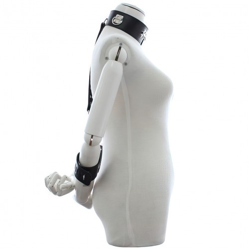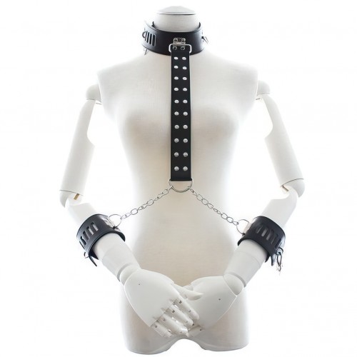 Ошейник совмещен с фиксаторами для рук и прекрасно подойдёт как начинающим, так и опытным практикам субкультуры БДСМ.