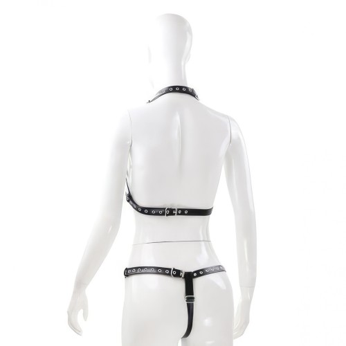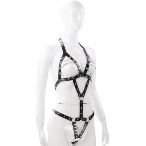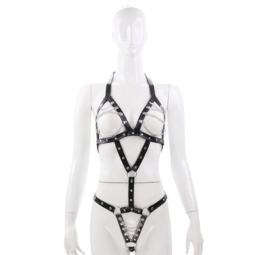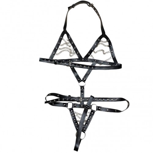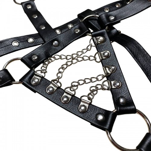 Кожаная сбруя по форме напоминает удобное сексуальное боди.