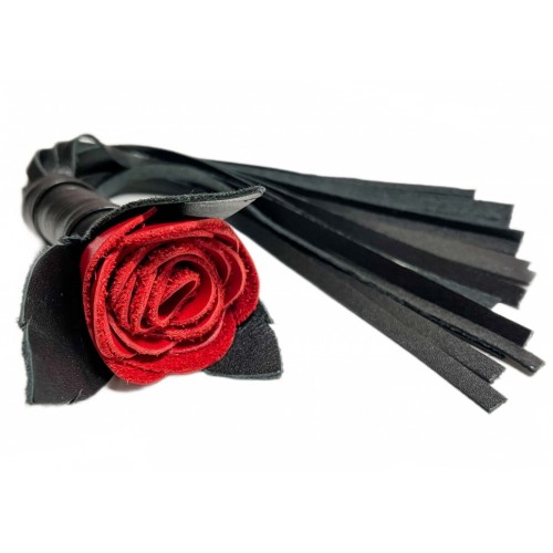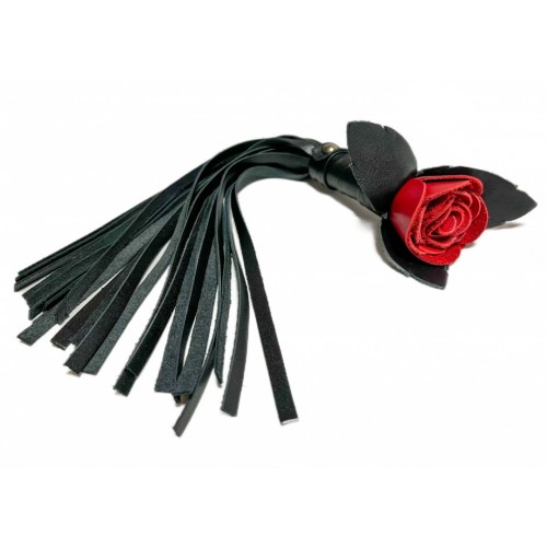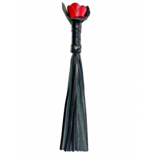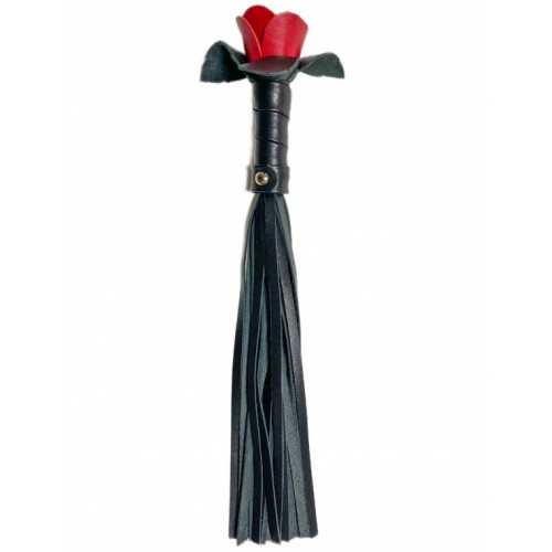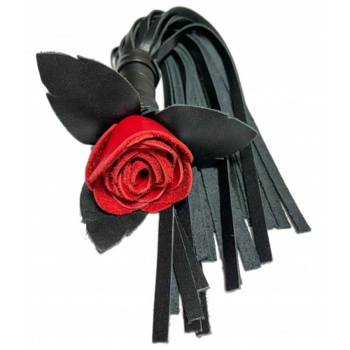 Восхитительная мини-плеть, украшенная красной розой. Рукоятка и хвосты плети выполнены из натуральной мягкой кожи.