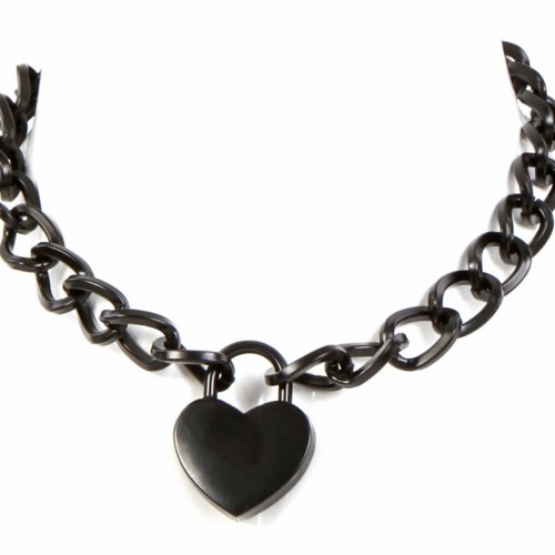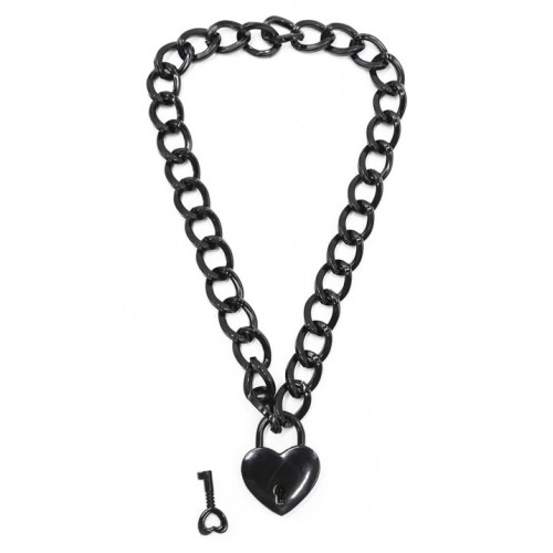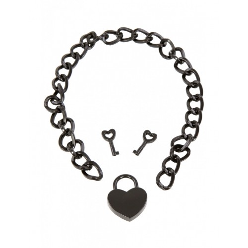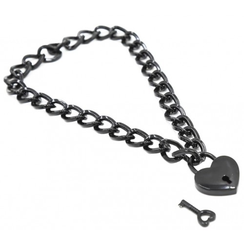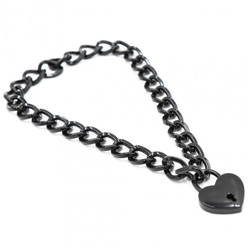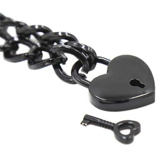 Черный ошейник-цепочка с замком в виде сердца