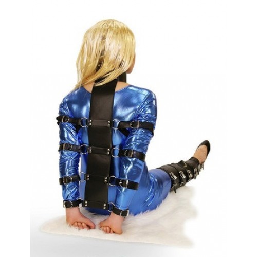 Четыре ремня свяжут руки вашего возлюбленного от локтей до запястья, плотно, но комфортно. Бондажный комплект ошейник с армбиндером БДСМ изготовлен из кожи чёрного цвета.
