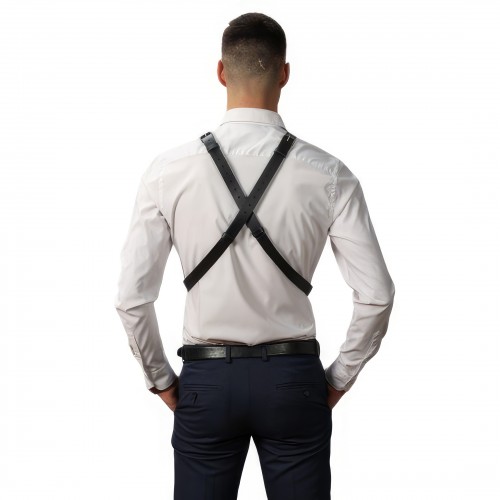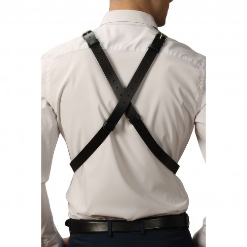 Стильная и лаконичная мужская портупея, полностью выполненная из натуральной кожи. Декорирована качественной металлической фурнитурой.