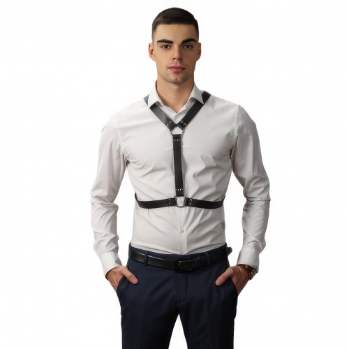 Кожаная двусторонняя БДСМ сбруя для мужчин