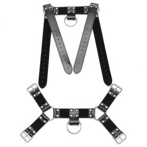 Черная мужская сбруя подчеркнет плечи и грудь мужчины!