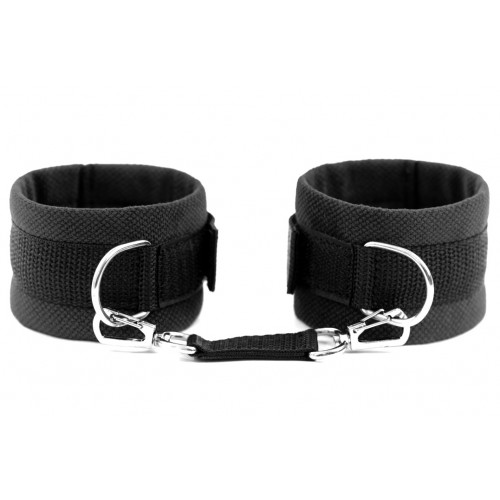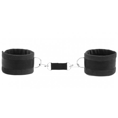Металлическая фурнитура и липучки обеспечивает качественную фиксацию изделия на ноге. Соединение на карабинах прочно фиксирует оковы вместе.
