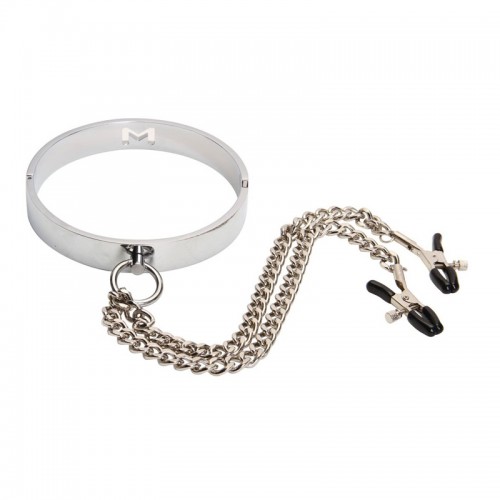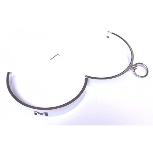 Кольцо для цепи откручивается. Ошейник декорирован прорезью в форме буквы М.