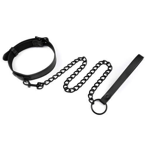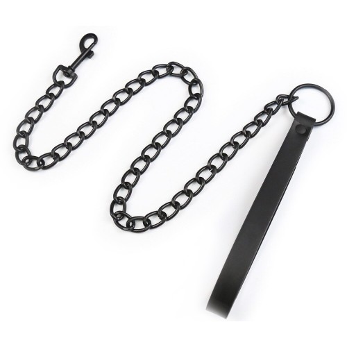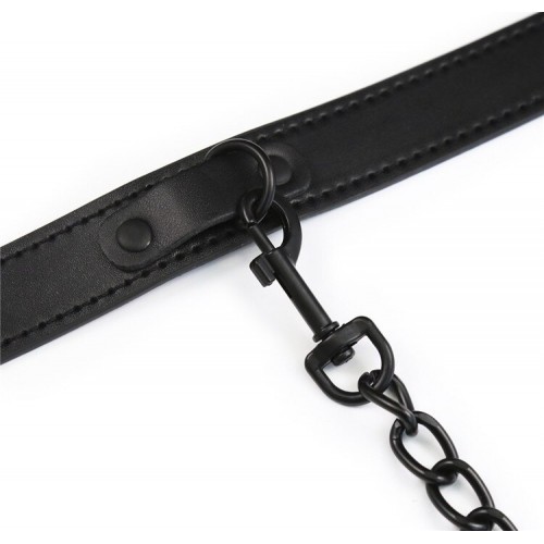 Металлическая цепочка с петелькой, выполняющие роль поводка, крепятся карабином к ошейнику. Застегивается ошейник с помощью пряжки и подшит мягким плюшем для Вашего удобства, заботясь о Вашем комфорте не оставляя следов на шее.