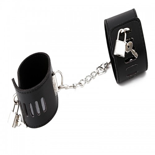 Комплектация: 2 поножей, цепочка с карабинами, 2 замочка, 4 ключика.