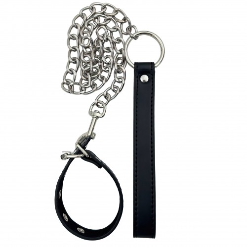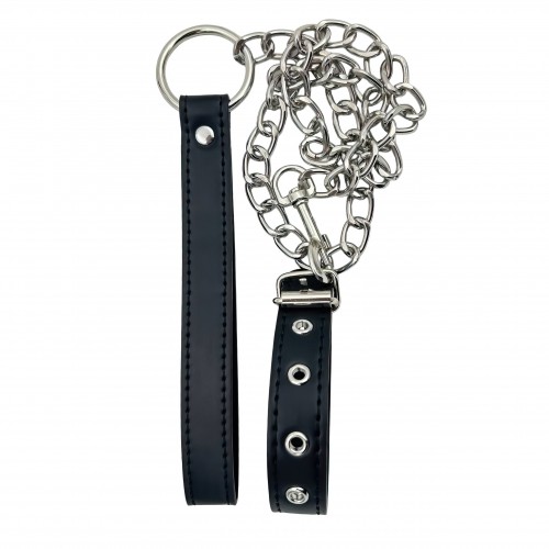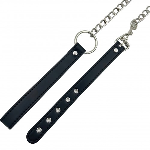 Изделие представляет собой тоненькую полоску, плотно обхватывающую член, и длинный металлический поводок, который придает аксессуару еще более дерзкий внешний вид.