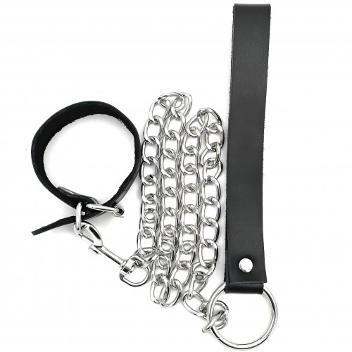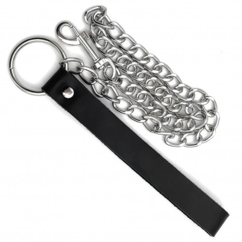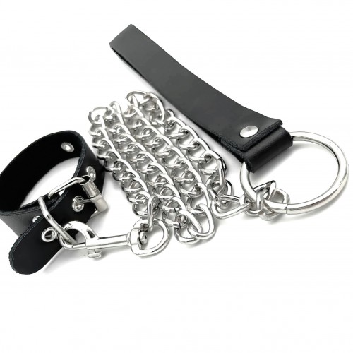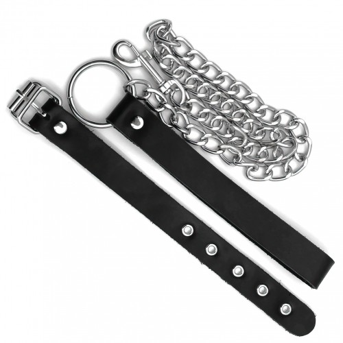 Изделие представляет собой узкий ремешок, плотно обхватывающую член, и длинный металлический поводок, который придает аксессуару еще более дерзкий внешний вид.