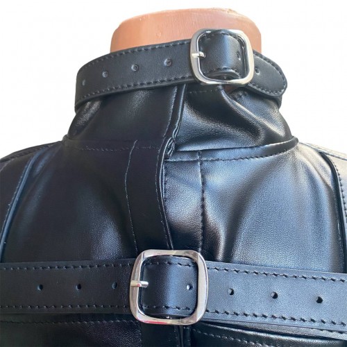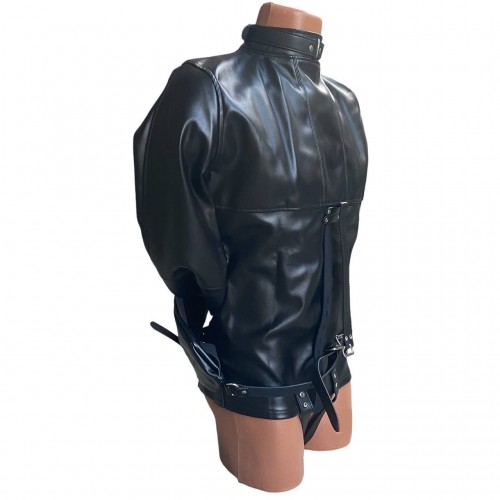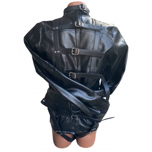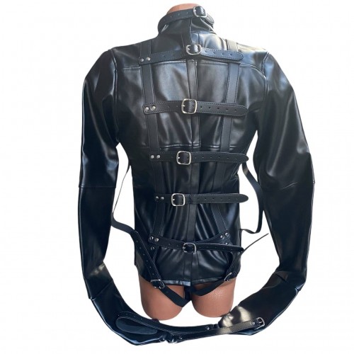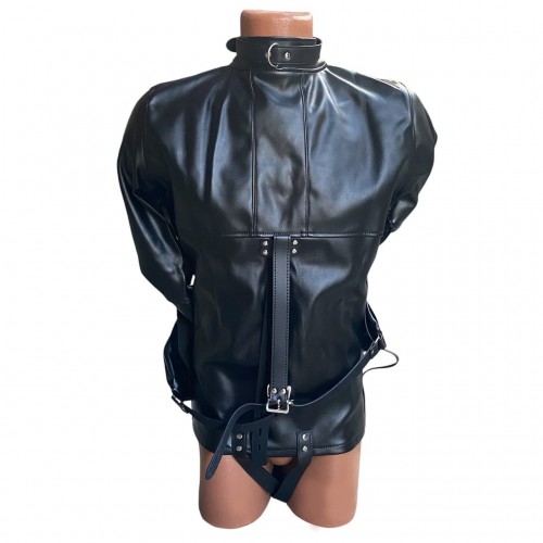 Смирительный жакет предназначен для надежной и удобной фиксации корпуса и рук подчиняющегося партнера! На рукавах без отверстий для кистей есть небольшие полукольца, которые соединяются между собой ремнями.