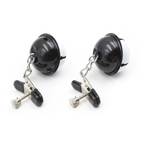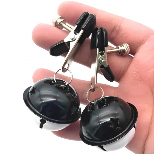 Зажимы украшены бубенчиками, которые будут сопровождать весь процесс звенящими звуками - партнер не сможет оторвать взгляд от Вашего бюста!