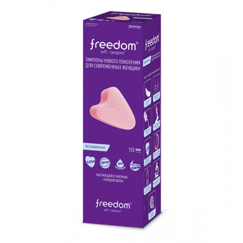 Тампоны нового поколения FREEDOM® без веревочки! Тампоны FREEDOM® обеспечивают не только надежную защиту от выделений в критические дни, но и дают возможность не отказываться от своих обычных увлечений и планов! Любовь, спорт, SPA, танцы или бассейн – с FREEDOM® все это возможно даже в критические дни!