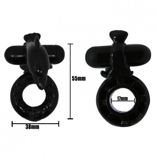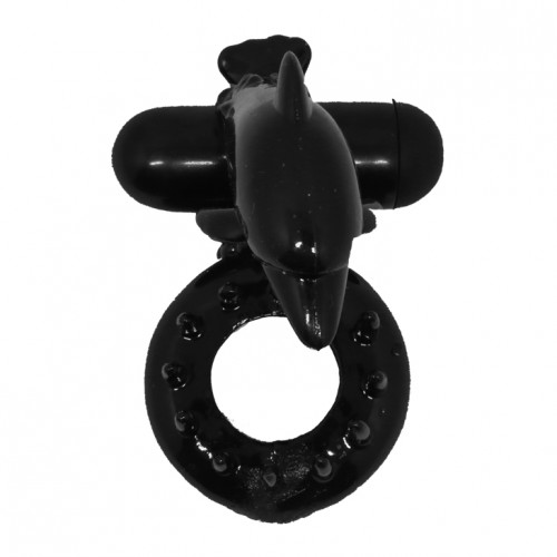 Эрекционное черное кольцо с вибрацией и клиторальным стимулятором. Вибро-элемент эрекционного кольца будет дополнительно стимулировать Вас и Вашу партнёршу.