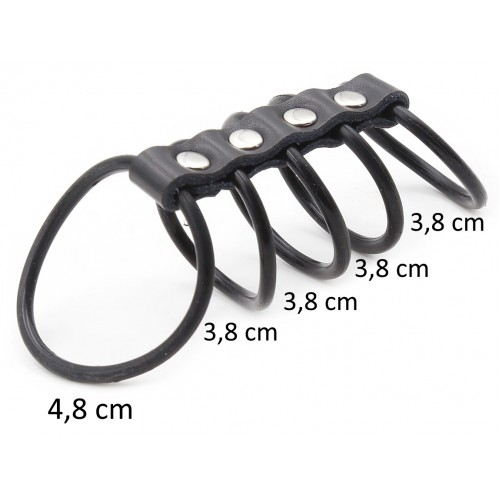 Наибольшее кольцо надевается на основание пениса и также фиксирует мошонку, кольца поменьше фиксируются на самом пенисе.