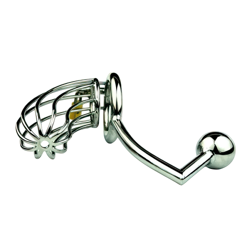 Комплектация: клетка для пениса, запорное кольцо, замок с тремя ключами, бархатный мешочек для хранения.