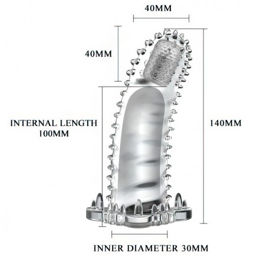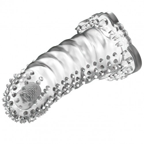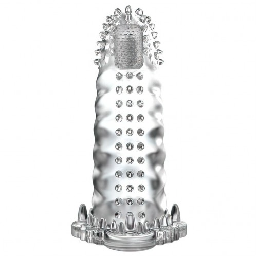 Способствует удлинению полового члена примерно на 4 см, а благодаря мягкому материалу, из которого сделана насадка, шипы не будут травмировать нежную кожу.