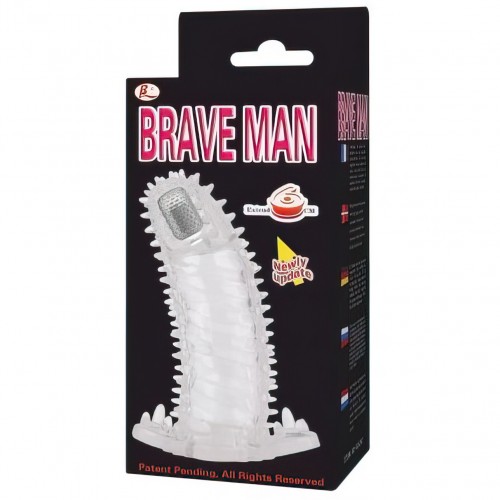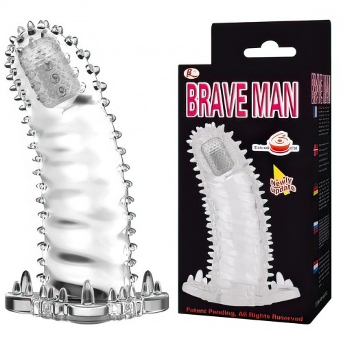 Прозрачная вибронасадка на пенис Brave Man 14 см