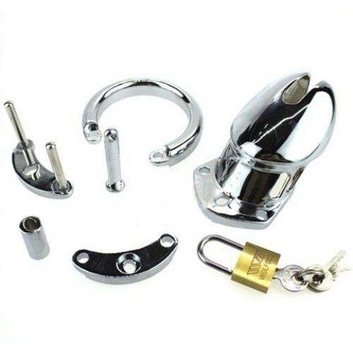 Комплектация: клетка для пениса, запорное кольцо, замок с тремя ключами, бархатный мешочек для хранения.