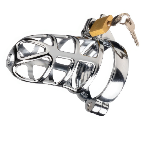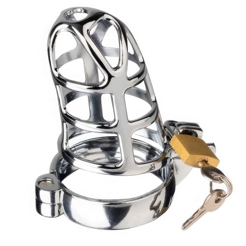 Комплектация: клетка для пениса, запорное кольцо, замок с двумя ключами.