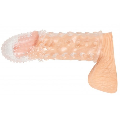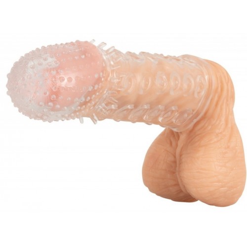 Удлиняющая насадка на пенис с точечно-ребристым рельефом Crystal Clear +2,5 см