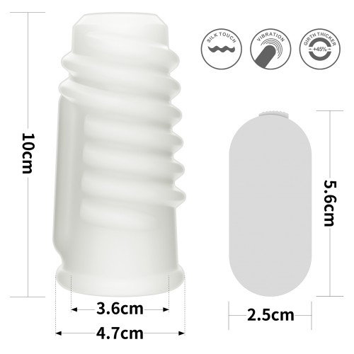 Размеры: насадка: общая длина 10 см, внутренний диаметр 3,6 см, внешний диаметр 4,7 см, вибропуля: длина 5,6 см, ширина 2,5 см