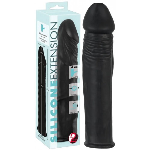 Удлиняющая черная насадка на пенис Silicone Extension + 4 см