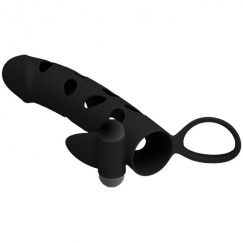 Cиликоновая насадка на пенис Pretty Love Penis Sleeve c клиторальным стимулятором и петлей под мошонку – потрясающая находка для любителей оригинальных секс-игрушек!