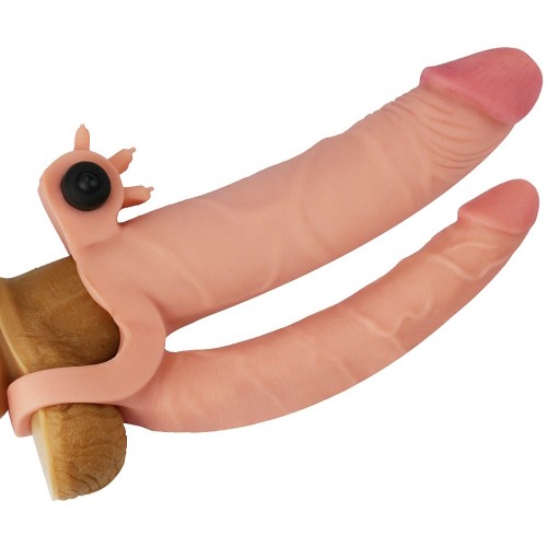 Удлиняющая вибронасадка для двойного проникновения Pleasure X Tender Vibrating Double Penis Sleeve + 3 см