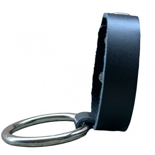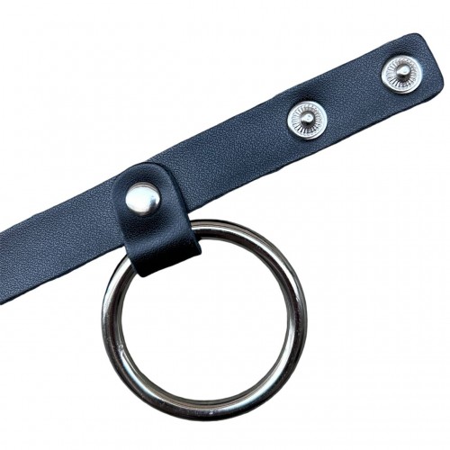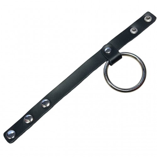 Кожаный ремешок крепится под мошонкой или у основания члена, железное кольцо располагается на самом пенисе.