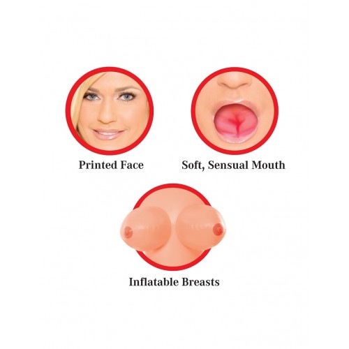 Комплектация: надувная кукла, двухсторонняя вставка из ТПР в форме вагины и ануса.