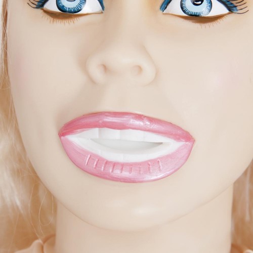 Эротическая кукла в позе стоя вызывает восхищение своей реалистичностью: красивая блондинка с длинными волосами и яркими голубыми глазами, с большой грудью и объемными бедрами, пальчики и на ручках и на ножках раздельные, с педикюром.