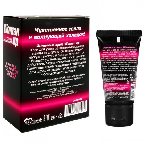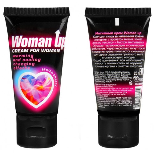 Женский возбуждающий крем Woman up с волнующим ароматом вишни. Раскрывает чувственность и раскрепощает, дарит потрясающие ощущения во время интимной близости.