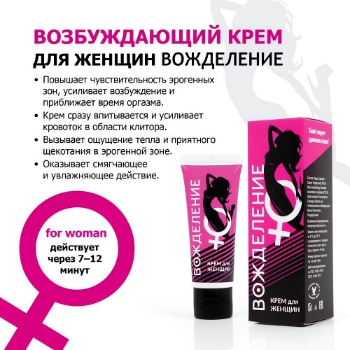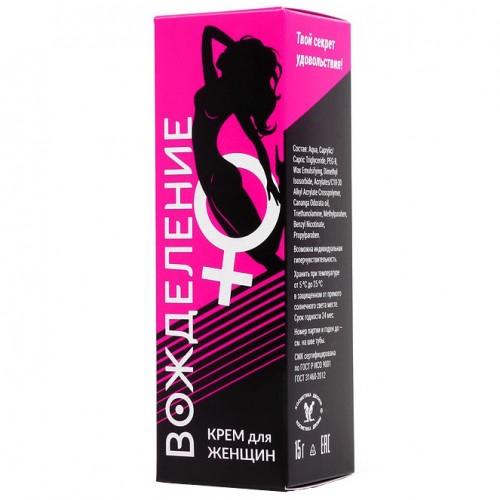 Женский возбуждающий крем "Вожделение" воплотит в жизнь самые сокровенные эротические фантазии, поможет получить невероятное удовольствие от занятий любовью!